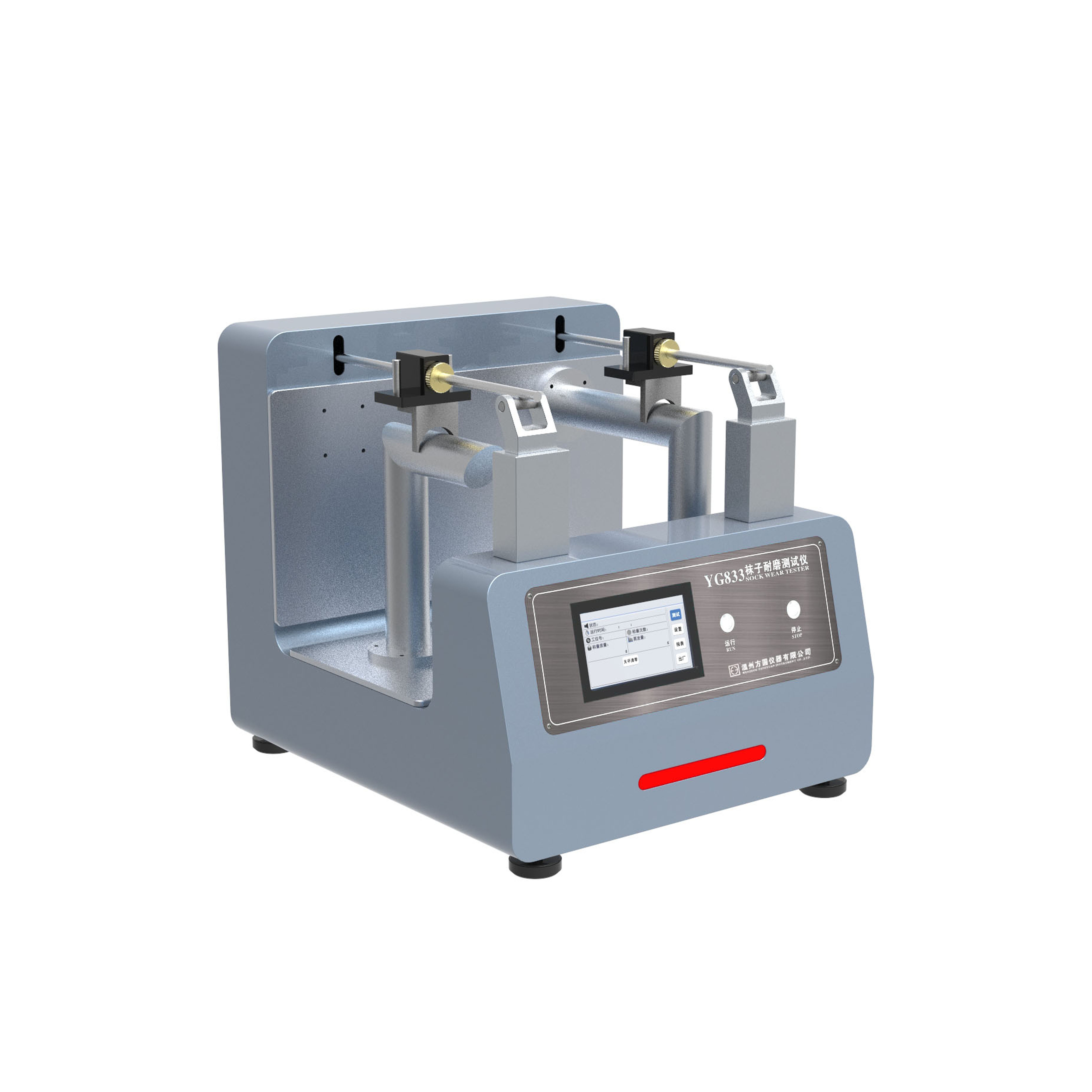 YG833襪子耐磨測(cè)試儀 EN 13770-2002紡織品 針織鞋襪耐磨性的測(cè)定中方法C。 測(cè)試原理: